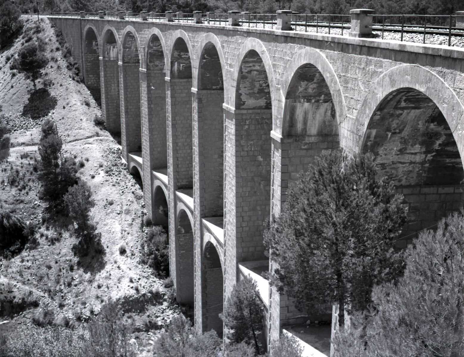 El tramo, a la vera del barranco entre montañas y pinos, alcanza su cenit en el soberbio viaducto de Riberola sobre el encañonado río Canaletes. Con un estético arco central, la fábrica de hormigón posee tal altura que resulta ser un mirador excepcional.