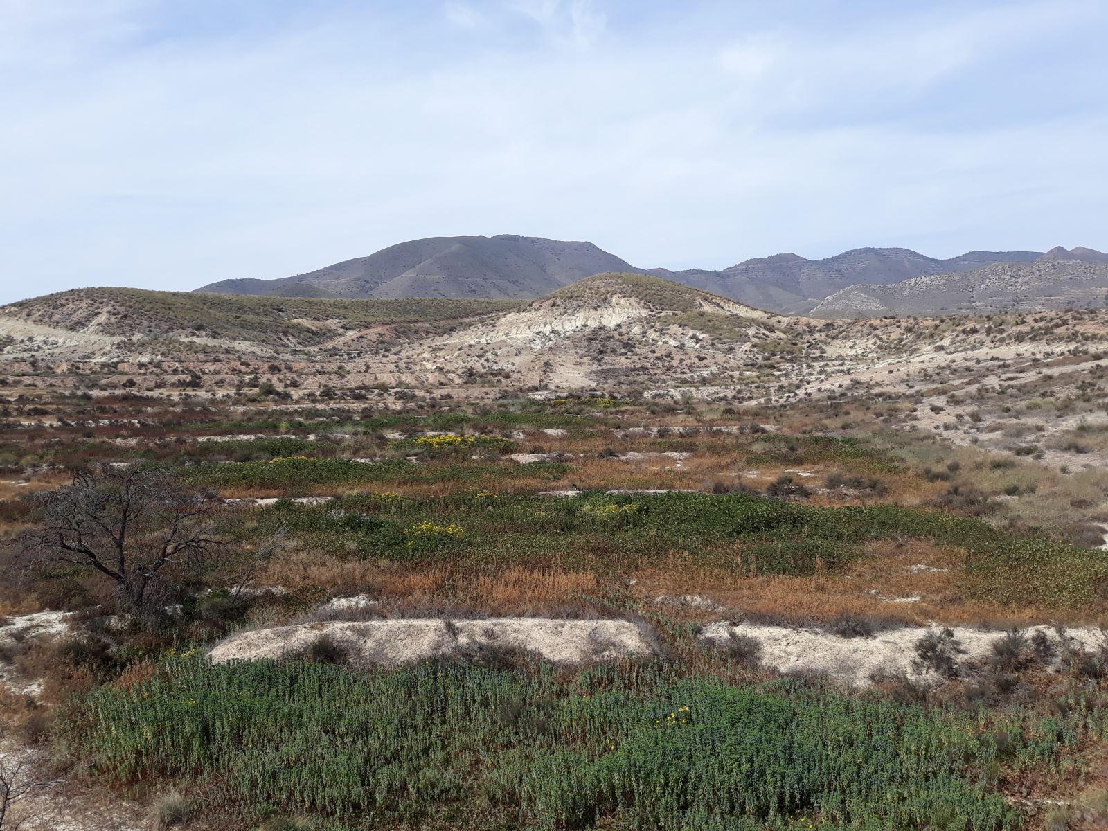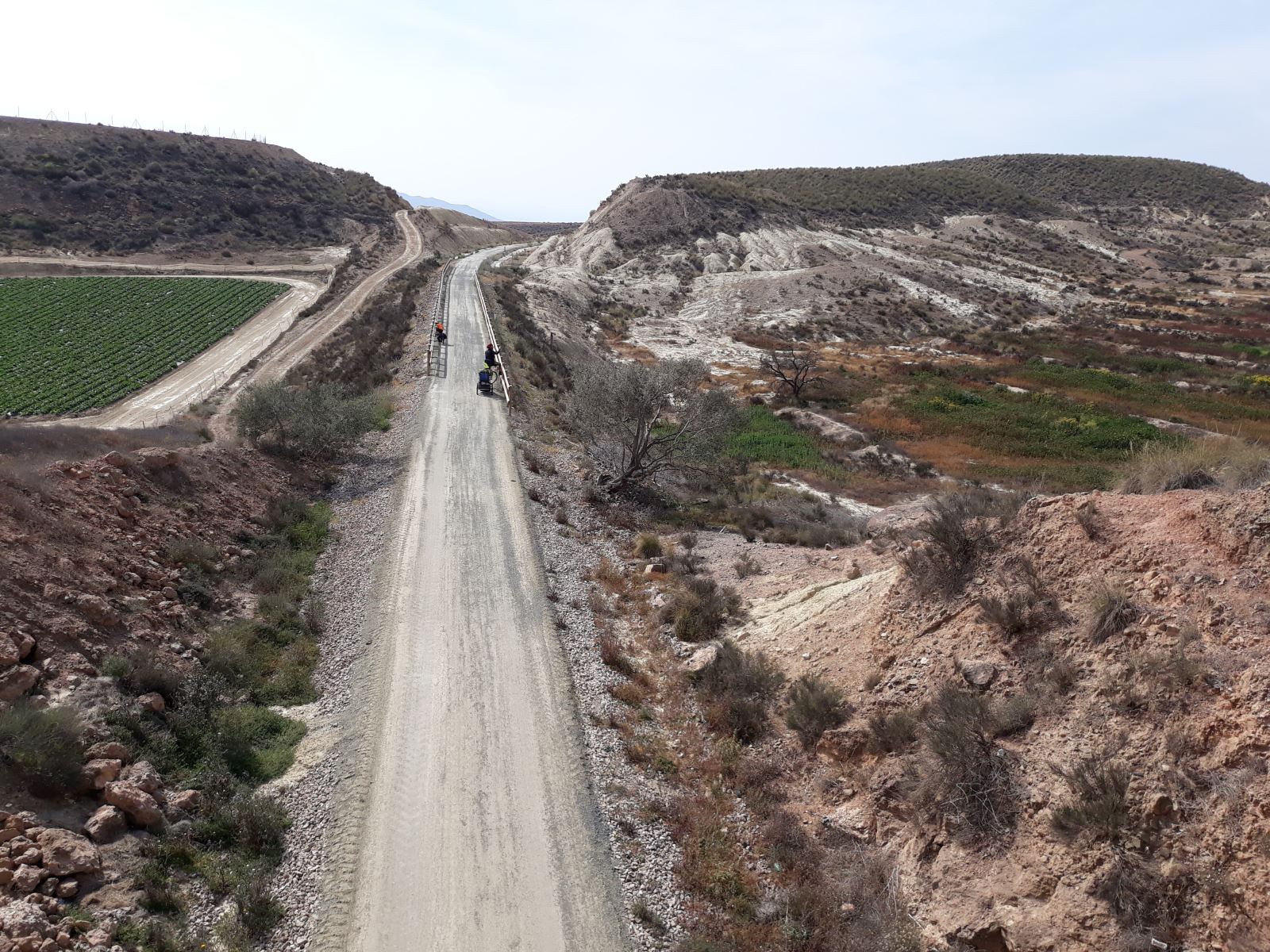 Poco antes del segundo área de descanso, el paisaje de contrastes tan característico de esta zona envuelve definitivamente la ruta. En el entorno, por naturaleza agreste, seco y dominado por el matorral, también se prodigan inmensos campos agrícolas. La huerta llena de verde la vista por obra y gracias de esas venas de plástico que irrigan vida gota a gota.