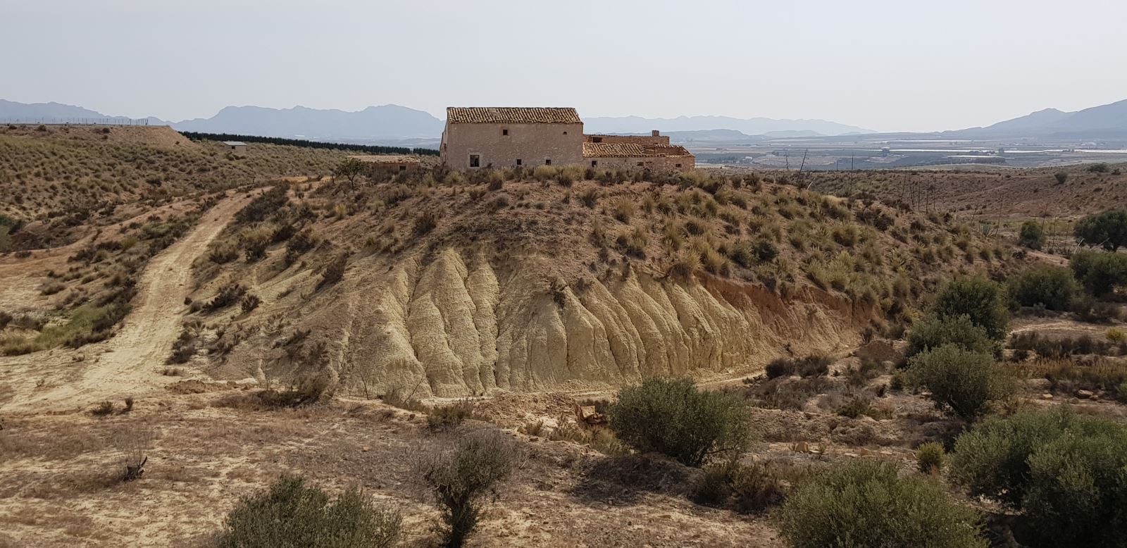 Entorno árido de esparto, aromáticas y matorral donde el riego por goteo obra el milagro de campos agrícolas de cítricos, olivos, almendros y huertas. En los extremos de la ruta se bordean sierras de aspecto silvestre: al este la sierra de Enmedio (espacio protegido de interés comunitario) con sus laderas de esparto y ramblizos terrosos; al oeste La Sierrecica cubierta por arbolado.