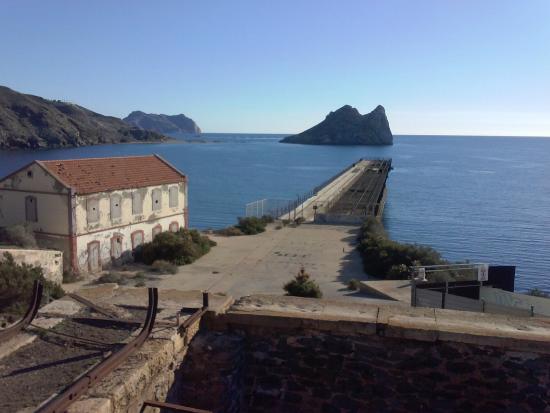Para la construcción de los depósitos-cargaderos se excavó la montaña y realizaron en piedra tres túneles y dos depósitos. Permitían almacenar mineral a la espera de los buques de carga. El tren podía descargar directamente en el barco pasando por los túneles 1 y 2, cuyas galerías estaban abiertas en ambos extremos. En caso contrario, el mineral era almacenado en los dos depósitos elevados sobre las fuertes bóvedas de los túneles. A la llegada del barco, el mineral caía por tolvas en vagonetas que remataban el embarque.
