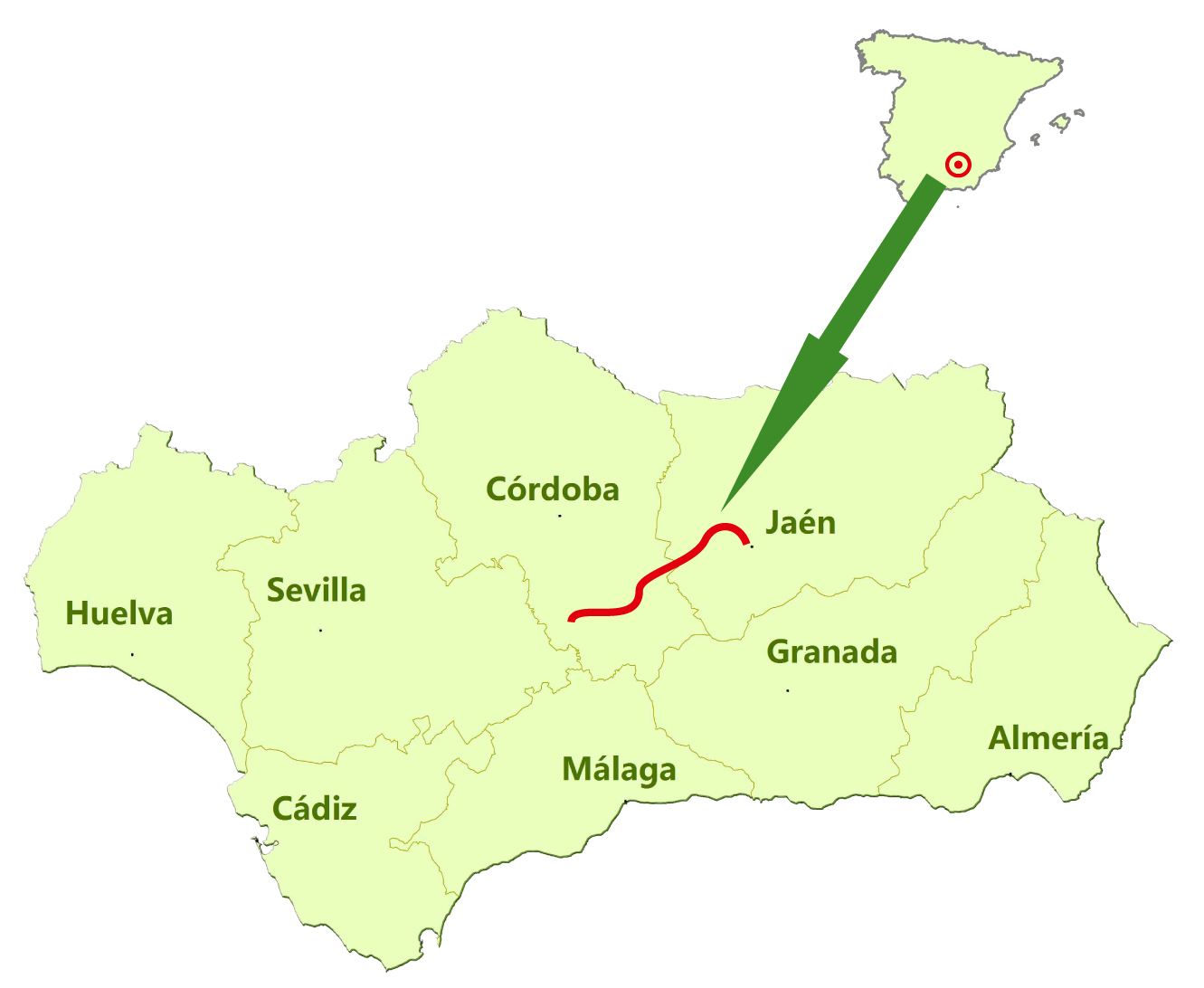 Municipios: Jaén, Torre del Campo, Torredonjimeno, Martos, Alcaudete, en Jaén; Luque, Baena, Zuheros, Doña Mencía, Cabra, Lucena, Moriles, Aguilar de la Frontera y Puente Genil en Córdoba.