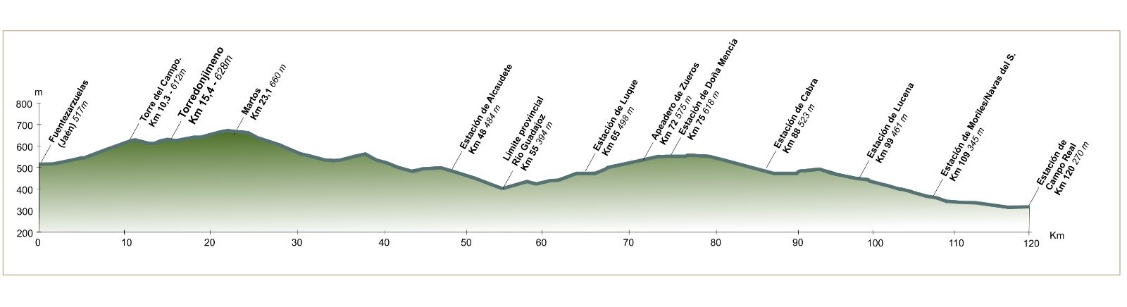 Longitud: 120 Km (ramal a Baena, 7,9 Km más)