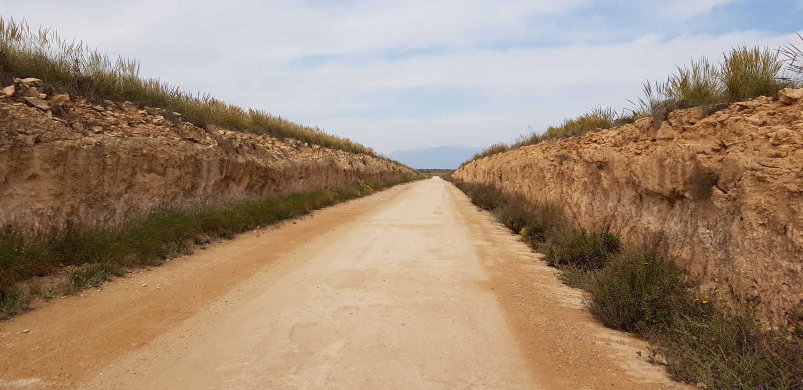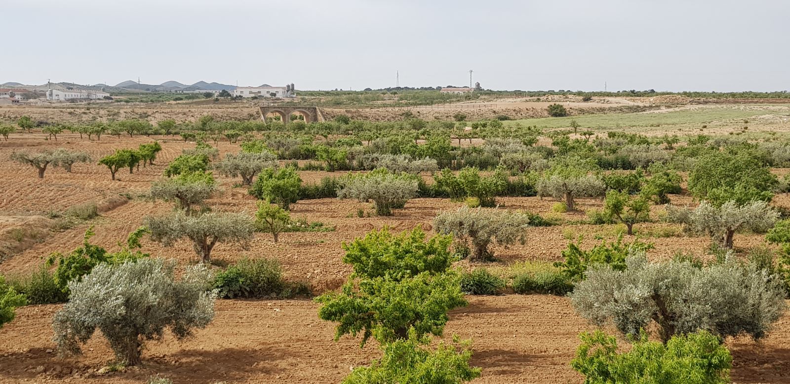 Nuevamente de cara a una infinita rectitud, el paisaje pierde el verdor de las huertas. Las granjas de cerdos y el secano cobran protagonismo. En los campos medran cultivos de antaño como almendros, olivo y cereal.