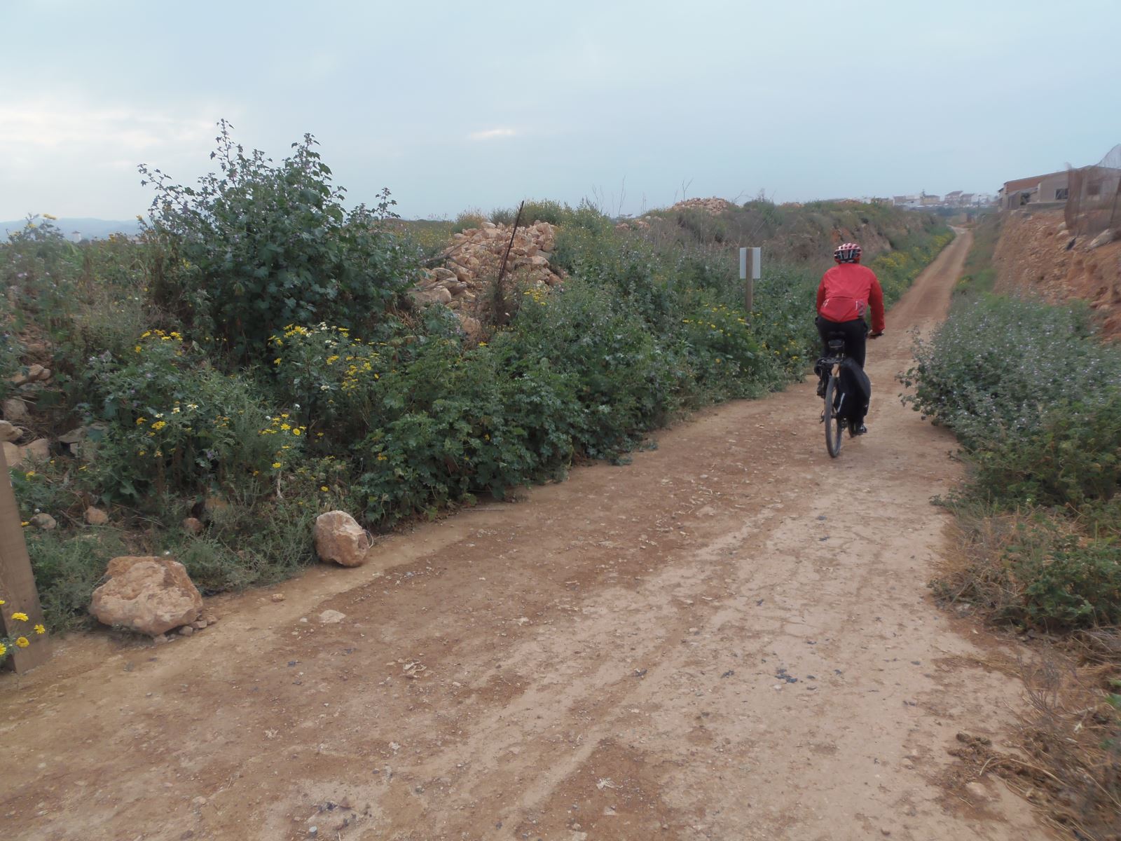 Una alambrada transversal impide seguir la traza original del ferrocarril porque la antigua vía ha sido ocupada por la industria plástica Sabic. La continuidad de la ruta está garantizada por una ruta alternativa y señalizada que rodea la alambrada que cierra el perímetro de la finca Casa Grande. Primero iremos hacia la derecha por la pista rural que alcanza la RM-602; luego por el camino acondicionado exprofeso para ciclistas y caminantes, que discurre junto a dicha carretera hasta completar un largo rodeo de 4 km.
