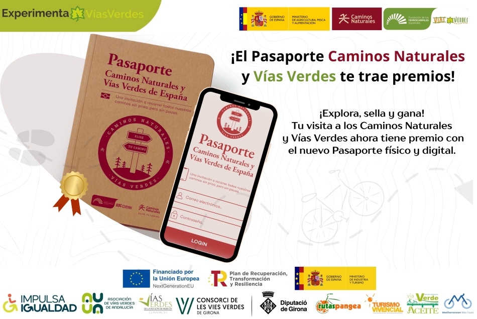 1/1/2026 Bases para la obtención de premios: “Experimenta Vías Verdes” del Pasaporte de Caminos Naturales y Vías Verdes de España Acción coordinada por la Fundación de los Ferrocarriles Españoles en colaboración con el Programa de Caminos Naturales del Ministerio de Agricultura, Pesca y Aliemntación con el fin de recorrer y sellar rutas en el Pasaporte de Caminos Naturales y Vías Verdes para optar a premios de experiencias turísticas. |