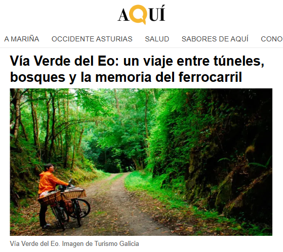 Y también el diario digital AQUÍ Diario se ha querido hacer eco de otra vía verde gallega: la Vía Verde del Eo que discurre por Galicia y Asturias, entre túneles y bosques. Leer el artículo aquí>>