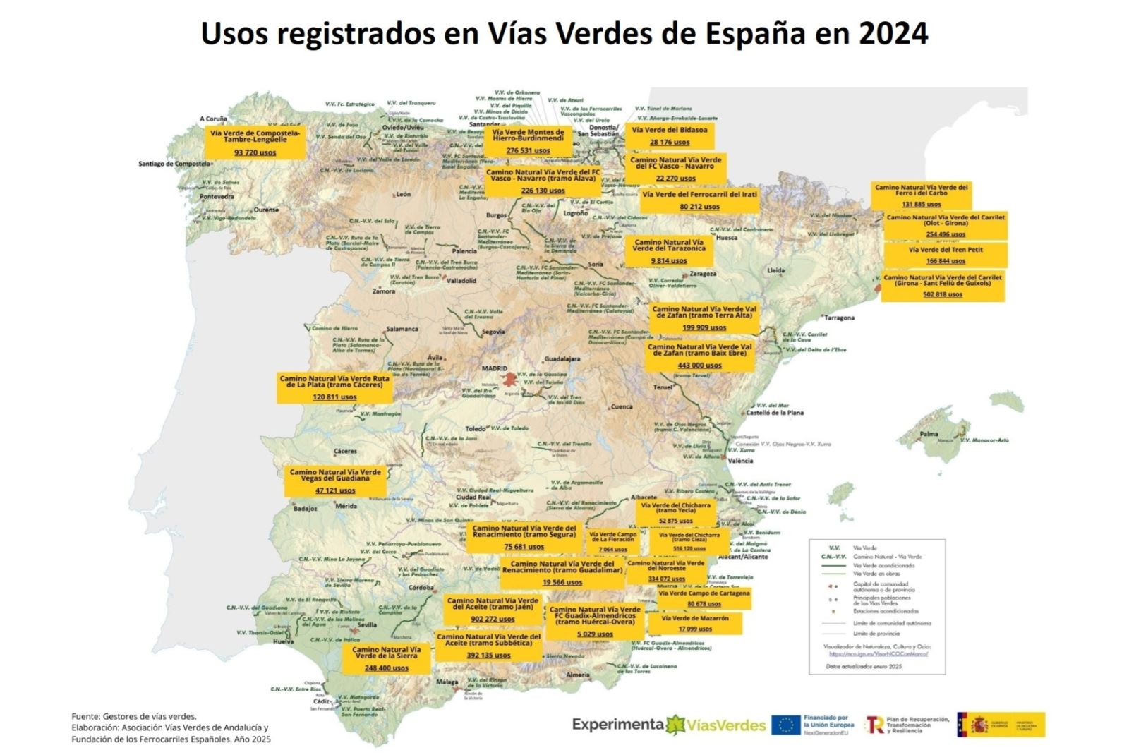- Las vías verdes españolas registraron más de cinco millones y medio de usos en 2024. Ver, aquí>>