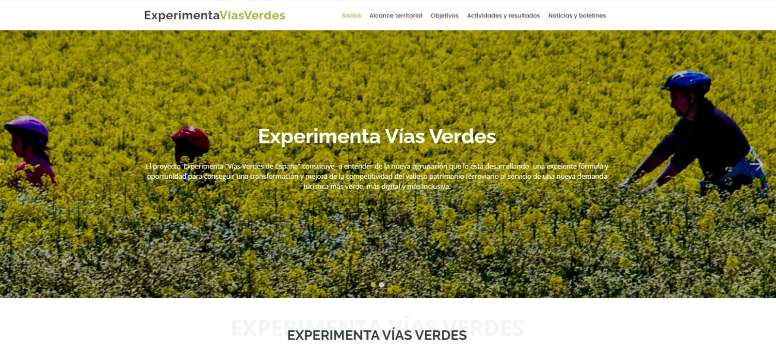 ‘Experimenta Vías Verdes’, proyecto que reúne a 10 entidades públicas y privadas coordinadas por la Fundación de los Ferrocarriles Españoles para la mejora de la experiencia-país ‘Vías Verdes de España’, presenta un nuevo espacio web en el que se recogerán todas las novedades y avances de la iniciativa, que obtuvo la segunda mejor puntuación en la última convocatoria del Programa Experiencias Turismo España del Ministerio de Industria y Turismo.