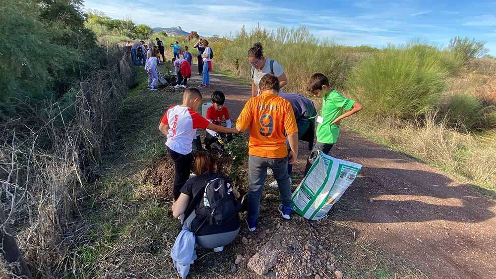 Plantaron madroños en el Camino Natural Vía Verde del Guadiato y Los Pedroches para celebrar un cumpleaños infantil