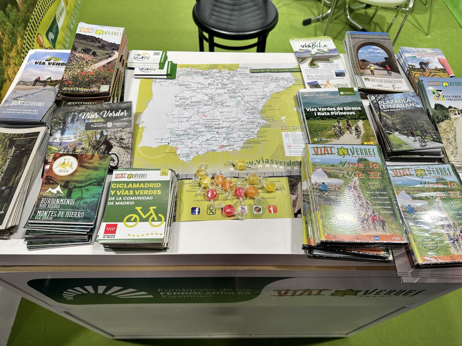 - Entrega de más de 4000 folletos durante los 5 días de la feria: programa Vías Verdes de España, Vías Verdes de varias comunidades Autónomas como Madrid, Navarra, Murcia. De algunas provincias como de Girona o específicas de algunas Vías Verdes como Tarazonica, Aceite, Sierra, del Renacimiento, Urola, Plazaola, Montes de Hierro, Compostela Tambre Lengüelle, Val de Zafán, Préjano y Río Oja, Campiña, Serón o de empresas como Vía Bike o Bicis Ambroz. El folleto de la Fundación de los Ferrocarriles y el del Museo del Ferrocarril de Cataluña también fueron repartidos en el estand de Vías Verdes.