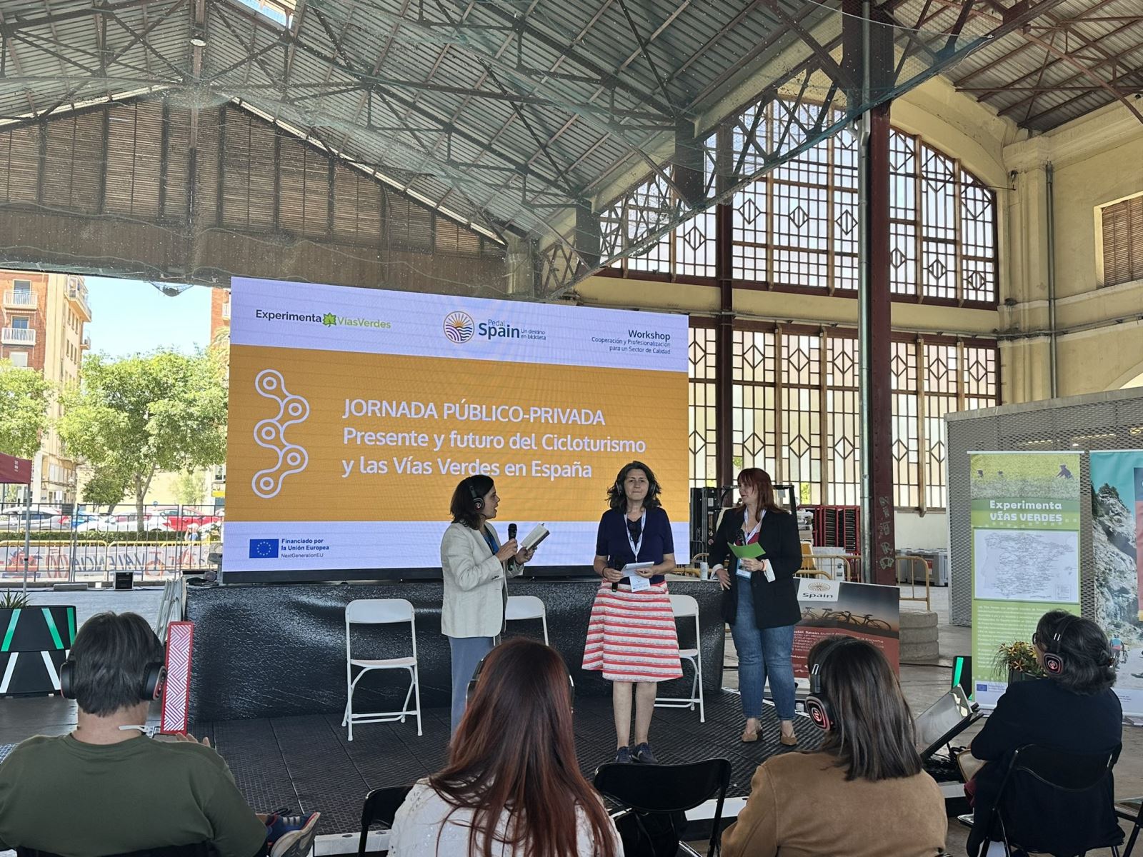 Después tuvo lugar la presentación de los dos proyectos de Experiencias, a cargo de Arantxa Hernández, Gerente de Vías Verdes, y Belén Calahorro, de ConBici y coordinadora de Pedal Spain. En esta sesión se pudieron conocer los avances y las sinergias entre ambas iniciativas.