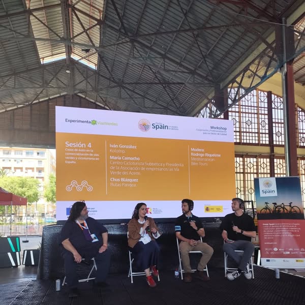 Los protagonistas de la siguiente charla fueron Iván González, de Kolotrip, María Camacho, del Centro Cicloturista Subbética, y de nuevo Chus Blázquez de Rutas Pangea. Una sesión centrada en analizar casos de éxito en la comercialización de vías verdes y cicloturismo en España. Todos ellos dieron buena cuenta de su dilatada experiencia en el sector, así como de la importancia de la colaboración entre las distintas empresas y la colaboración público-privada. Sobre esta última, Blázquez apuntó: “Nadie dice que sea fácil, porque los tiempos de las administraciones públicas y las empresas privadas son muy diferentes. Tenemos que acompasar nuestros ritmos”, recordó. Por su parte María Camacho, presidenta de la Asociación de empresarios de la Vía Verde del Aceite, recordó los orígenes y como el trabajo en coordinación está dando espectaculares resultados en el Camino Natural Vías Verde del Aceite. Iván de Kolotrip también mención la importancia de esa colaboración privada – privada entre diferentes empresas dedicadas al cicloturismo, cada uno con perspectivas que pueden ser diferentes pero que se enriquecen colaborando.