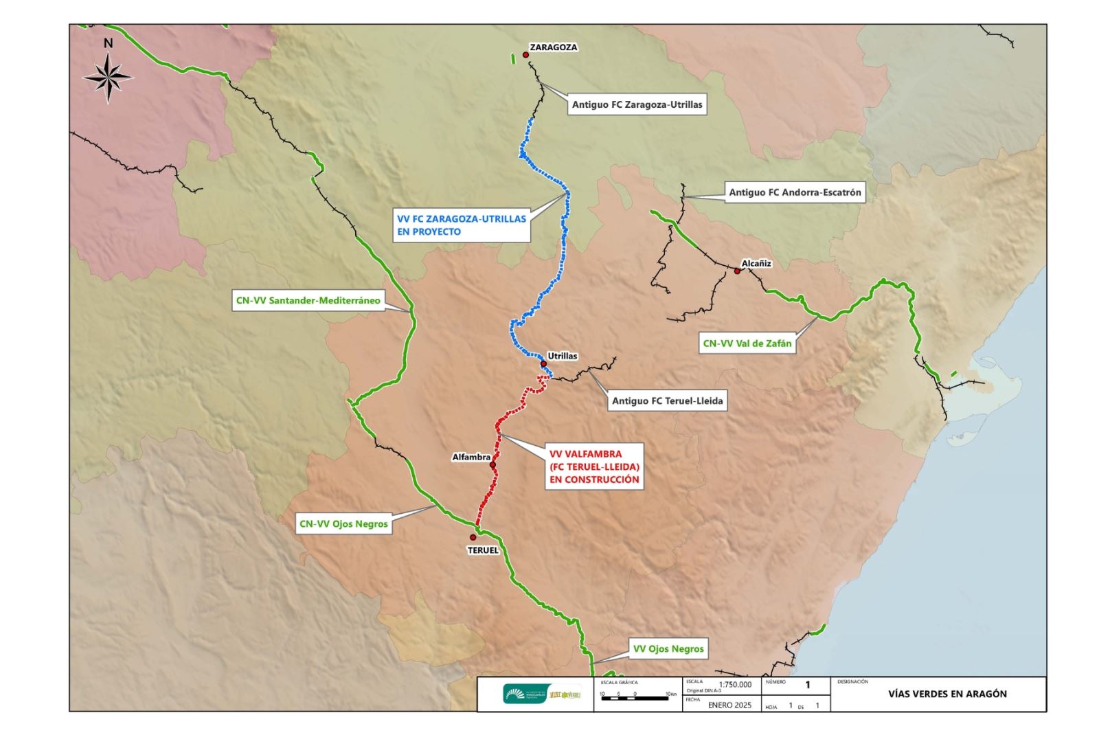 El proyecto habilitará un recorrido de 54 km entre Utrillas y el límite de la provincia de Zaragoza a través del antiguo ferrocarril minero Zaragoza – Utrillas.
